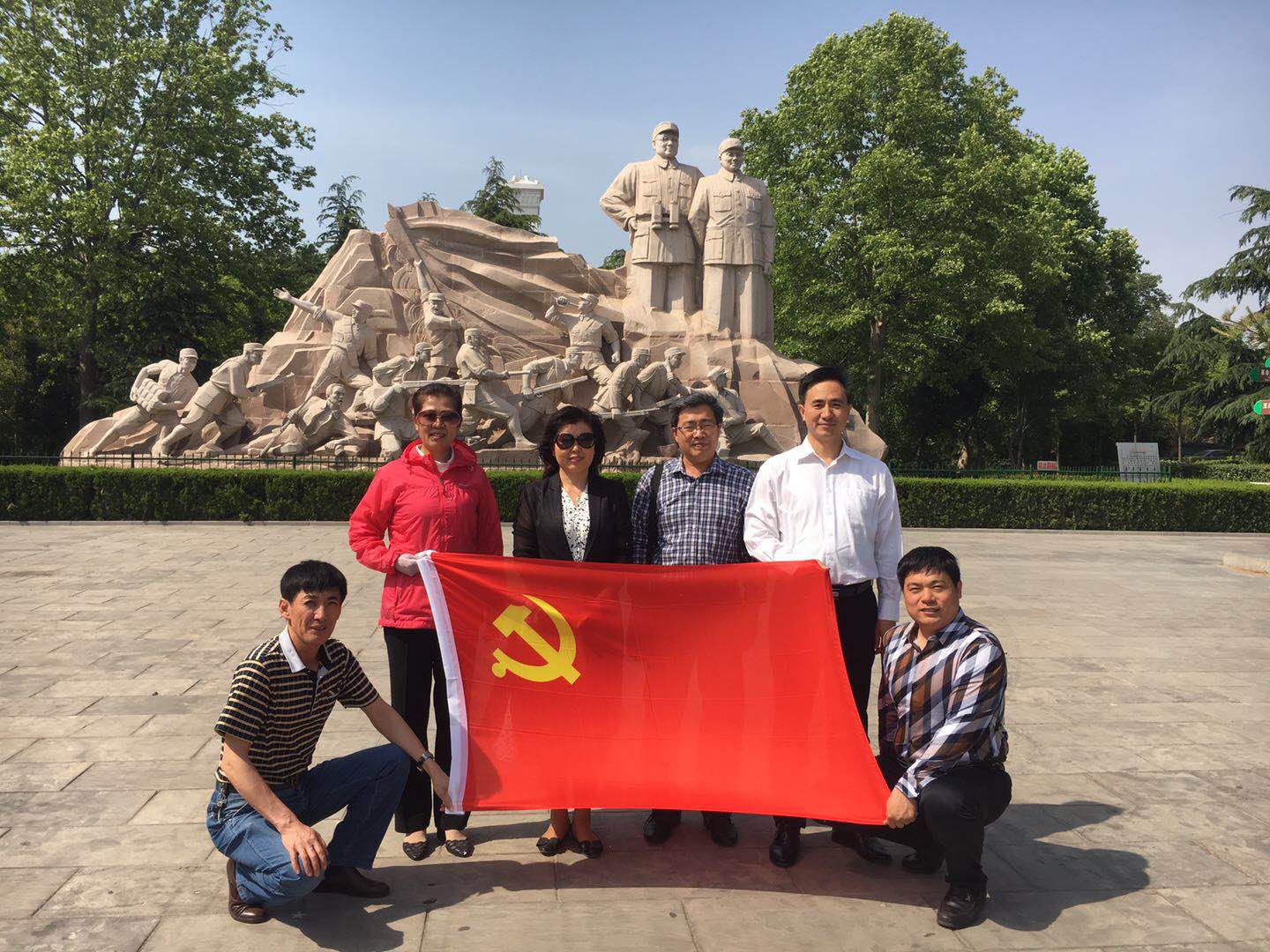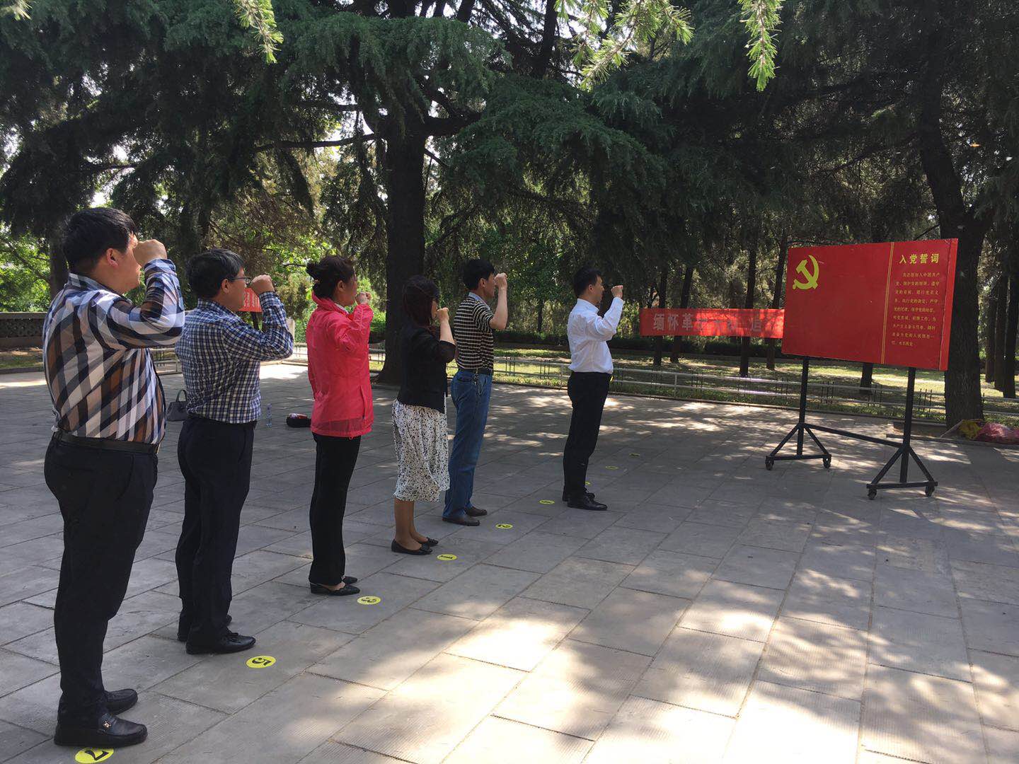 在鲁西南战役——羊山战斗纪念地党旗前,全体党员同志面向党旗、紧握右拳、庄严宣誓:“我志愿加入中国共产党,拥护党的纲领,遵守党的章程,履行党员义务,执行党的决定,严守党的纪律,保守党的秘密,对党忠诚,积极工作,为共产主义奋斗终身,随时准备为党和人民牺牲一切,永不叛党。”